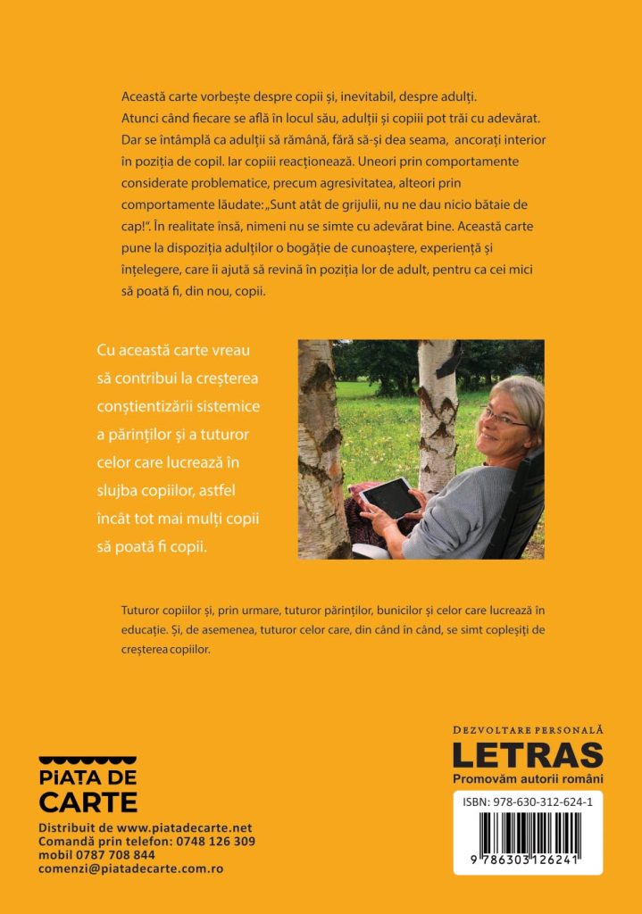Această carte vorbește despre copii și, inevitabil, despre adulți. Atunci când fiecare se află în locul său, adulții și copiii pot trăi cu adevărat. Dar se întâmplă ca adulții să rămână, fără să-și dea seama, ancorați interior în poziția de copil. Iar copiii reacționează. Uneori, prin comportamente considerate problematice, precum agresivitatea, alteori, prin comportamente lăudate: „Sunt atât de grijulii! Nu ne dau nicio bătaie de cap.”. În realitate, însă, nimeni nu se simte cu adevărat bine. Această carte pune la dispoziția adulților o bogăție de cunoaștere, experiență și înțelegere, care îi ajută să revină în poziția lor de adult, pentru ca cei mici să poată fi, din nou, copii.